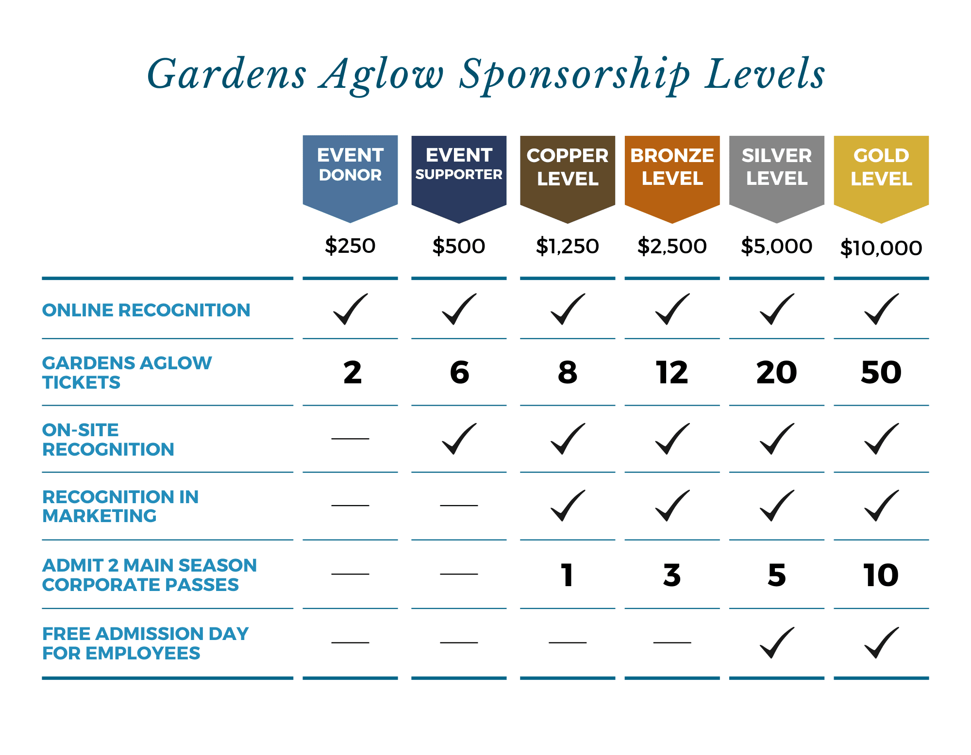 As a Gardens Aglow sponsor, you make it possible for guests and their loved ones to make cherished memories as they delight in the sounds, smells, and tastes of the season, within a glowing wonderland.
